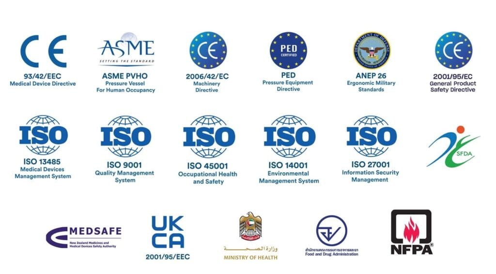 Ja. Alle ProReset-Hartschalen-Hyperbarkammern werden in Europa entwickelt und erfüllen oder übertreffen die geltenden EU-Vorschriften. Unsere Systeme sind CE-zertifiziert und entsprechen den relevanten ISO- und ASME-PVHO-Standards.